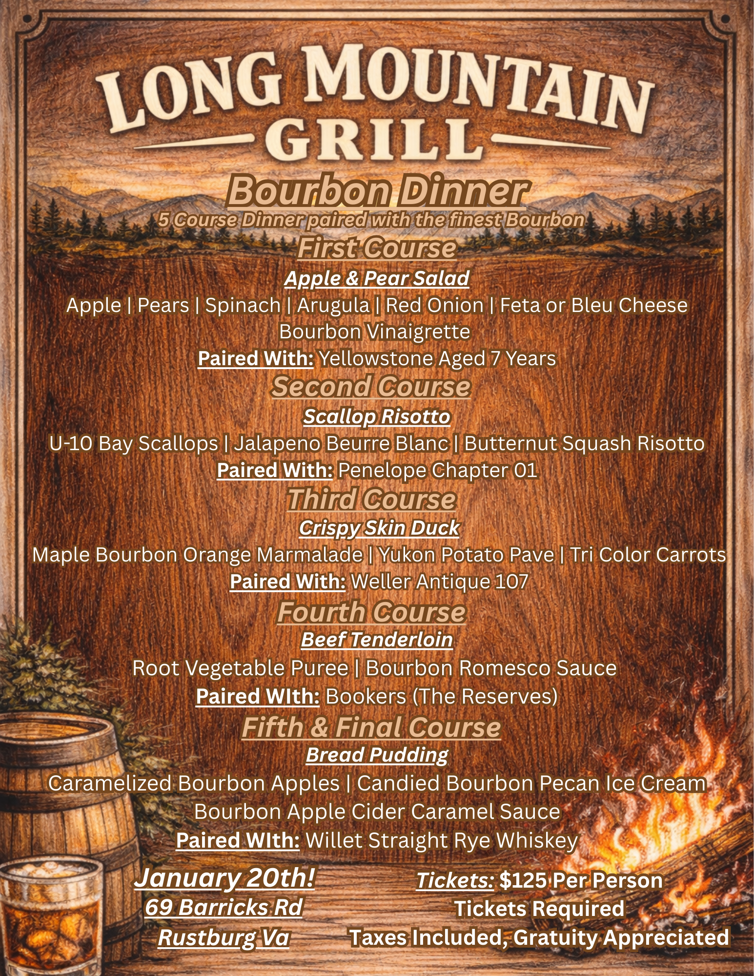 Enjoy a 5 Course Dinner paired with the Finest Bourbon!